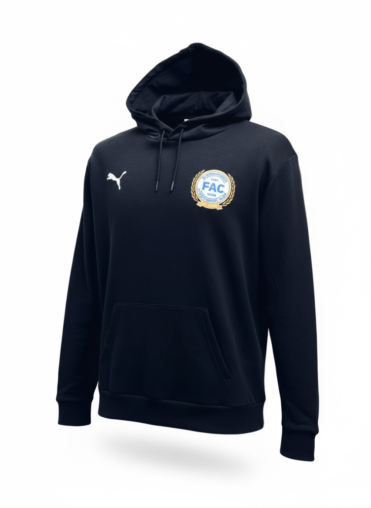 Zeige deine Begeisterung für den Floridsdorfer Athletiksport-Club auch an kühleren Tagen! Dieser hochwertige schwarze PUMA-Hoodie kombiniert Komfort und Vereinsstolz. Auf der Vorderseite besticht das elegante FAC-Jubiläumslogo, während der markante Backprint ein modernes Statement setzt. Ein Must-have für alle FAC-Fans